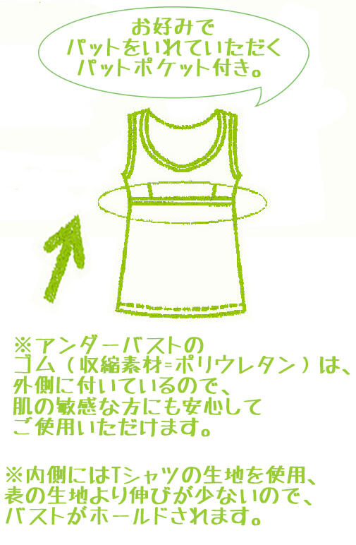 ◆ 内側にはTシャツの生地を使用、表の生地より伸びが少ないので、バストがホールドされます。