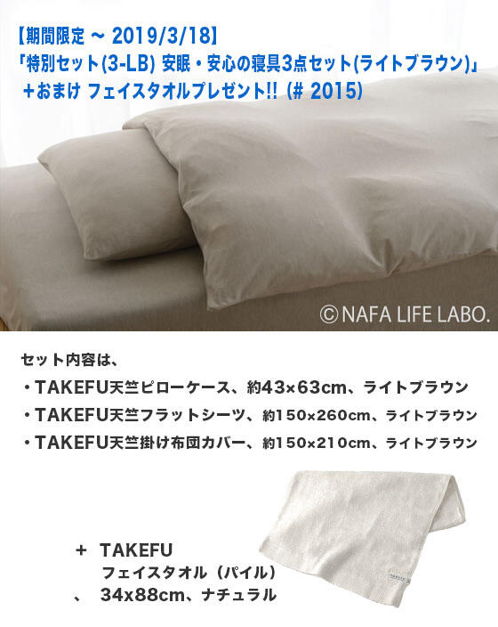 【期間限定〜3/18】「特別セット(3-LB) 安眠・安心の寝具3点セット(ライトブラウン)」+おまけ フェイスタオルプレゼント!!(# 2015)