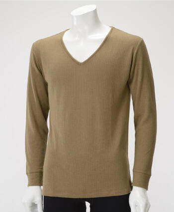 ◆ 竹布の二重ガーゼ天竺織り素材、癒布(ゆふ)のVネックの長袖Tシャツです。Vネックなので、ワイシャツなどの下に着用しても襟口から覗きません。