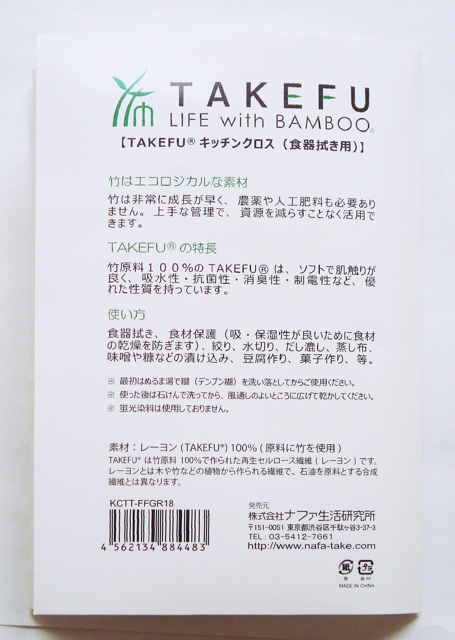 【 TAKEFU(竹布) キッチンクロス(食器拭き) :商品説明】