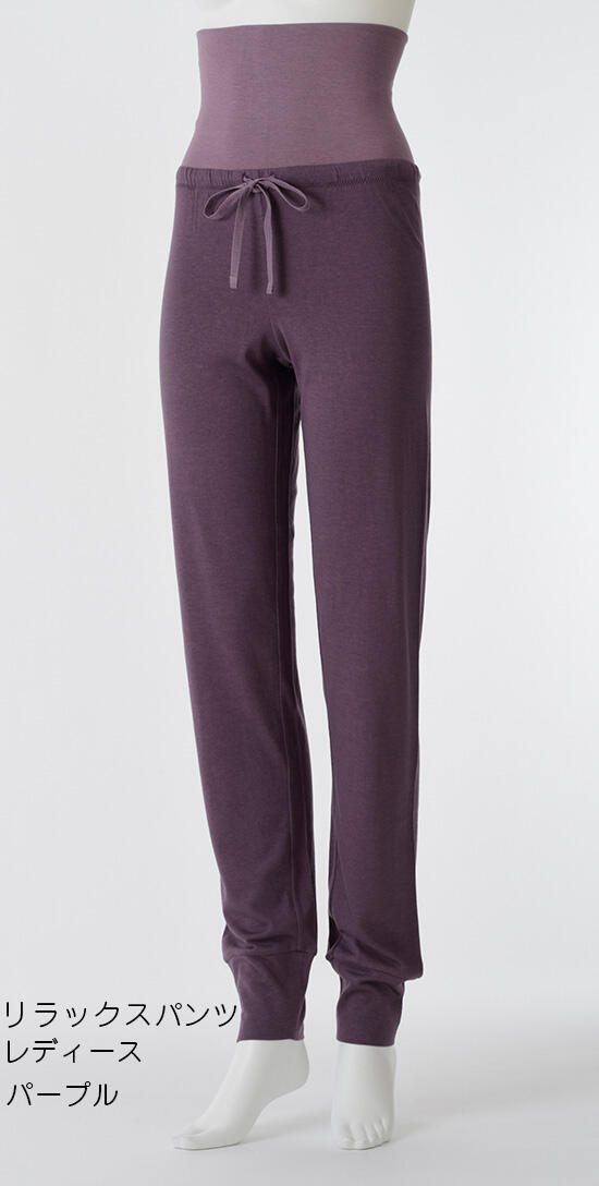 ◆ 人気のリラックスパンツ、カーキに加えてパープルが追加されました。ウエストのゴム部分を改良し、お腹周りのフィット感がよくなりました。足が軽くなるほど気持ちの良いはき心地に仕上がっています。ヨガウェアやマタニティとしてもオススメです。