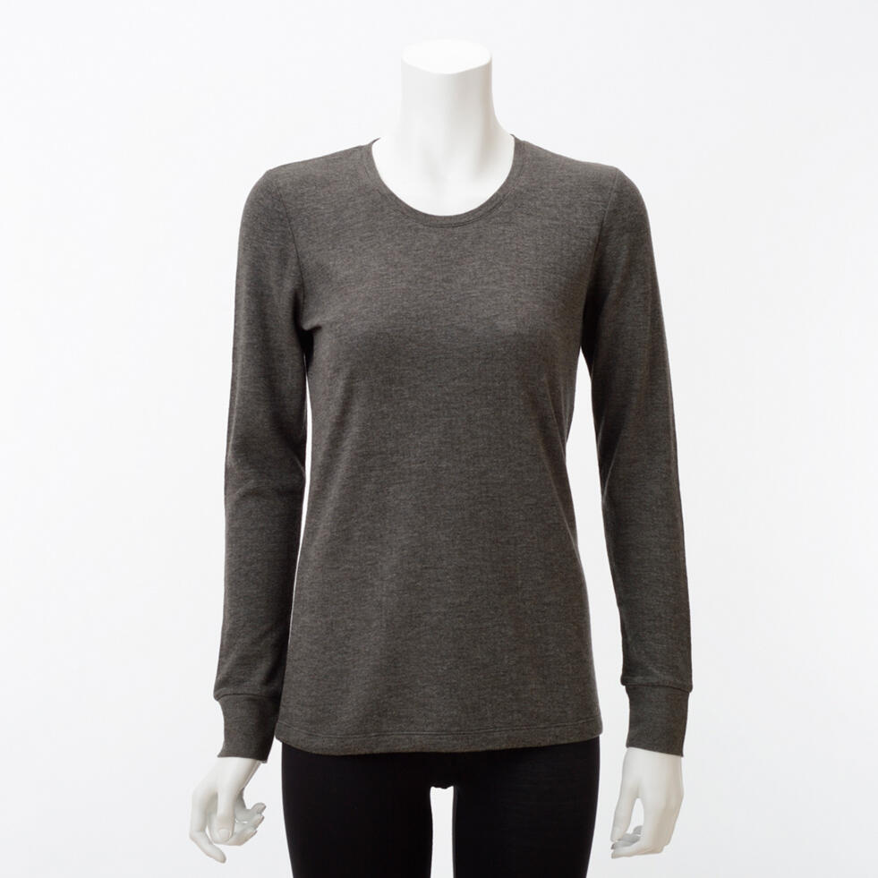 【竹布】 TAKEFU 癒布(ゆふ)竹の長袖ラウンドネック・レディース、煤竹(すすたけ)、M〜L(# 8638)