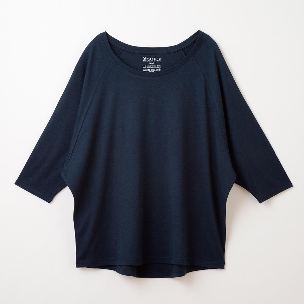 商 品 名 | 【竹布】 TAKEFU ドルマン七分袖Tシャツ・レディース、ネイビー、M〜L |