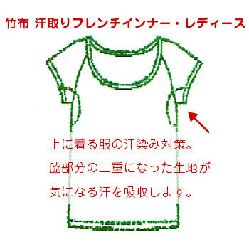 【 TAKEFU(竹布) 汗取りフレンチインナー・レディース :商品説明】
