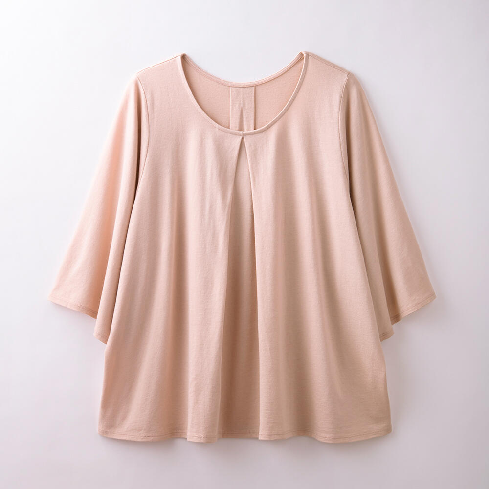 | 商 品 名 | 【竹布】 TAKEFU タックフレアーTシャツ、ピンクベージュ、フリーサイズ |