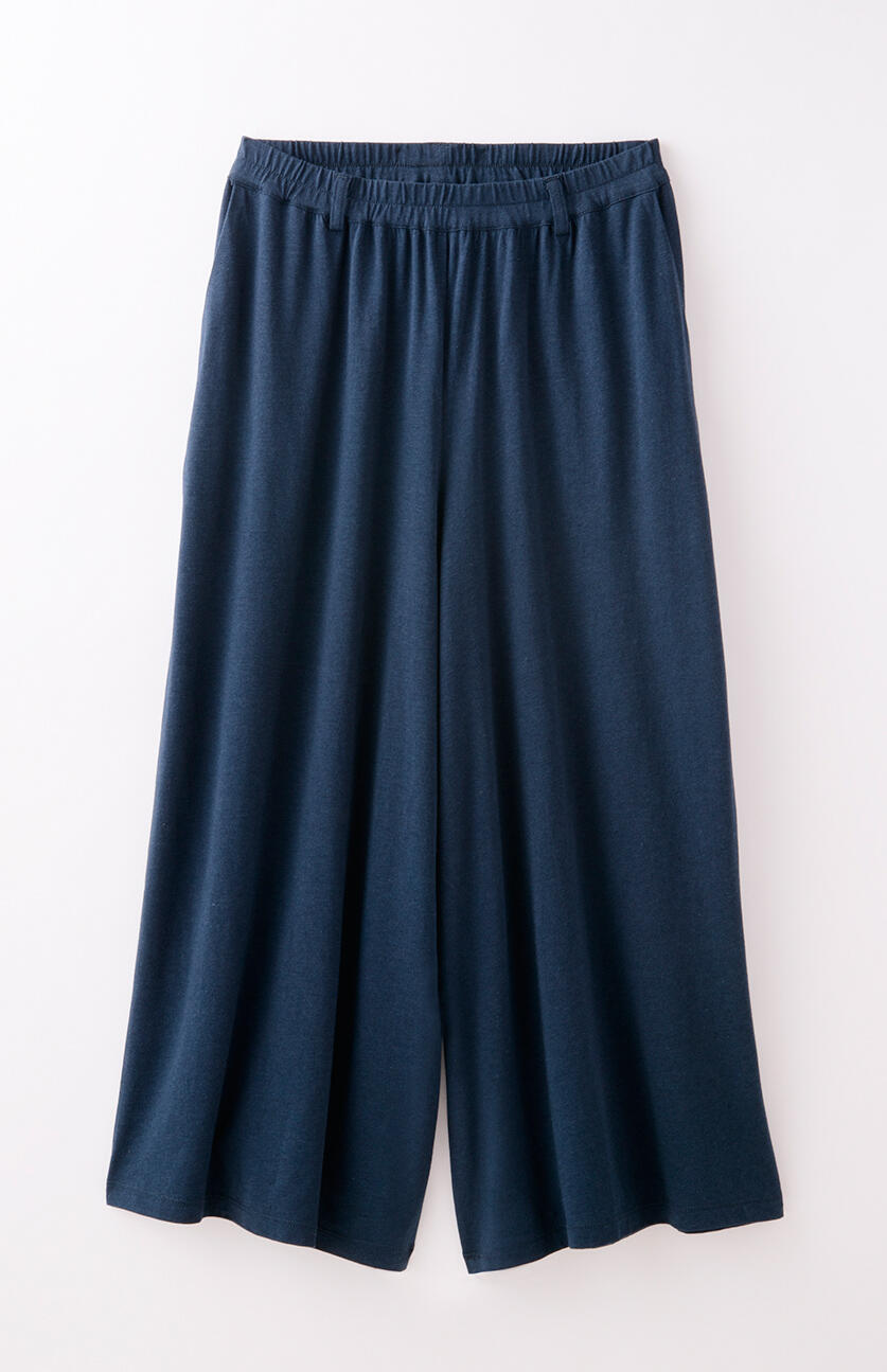 ◆ TAKEFU(竹布)フレアーパンツは、たっぷりとしたシルエットを、すっきりと見せ、年齢、体型を問わず着やすい7分丈のワイドパンツです。
