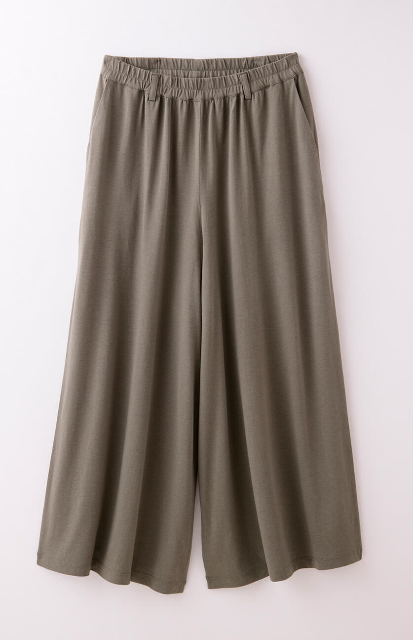 ◆ TAKEFU(竹布)フレアーパンツは、たっぷりとしたシルエットを、すっきりと見せ、年齢、体型を問わず着やすい7分丈のワイドパンツです。