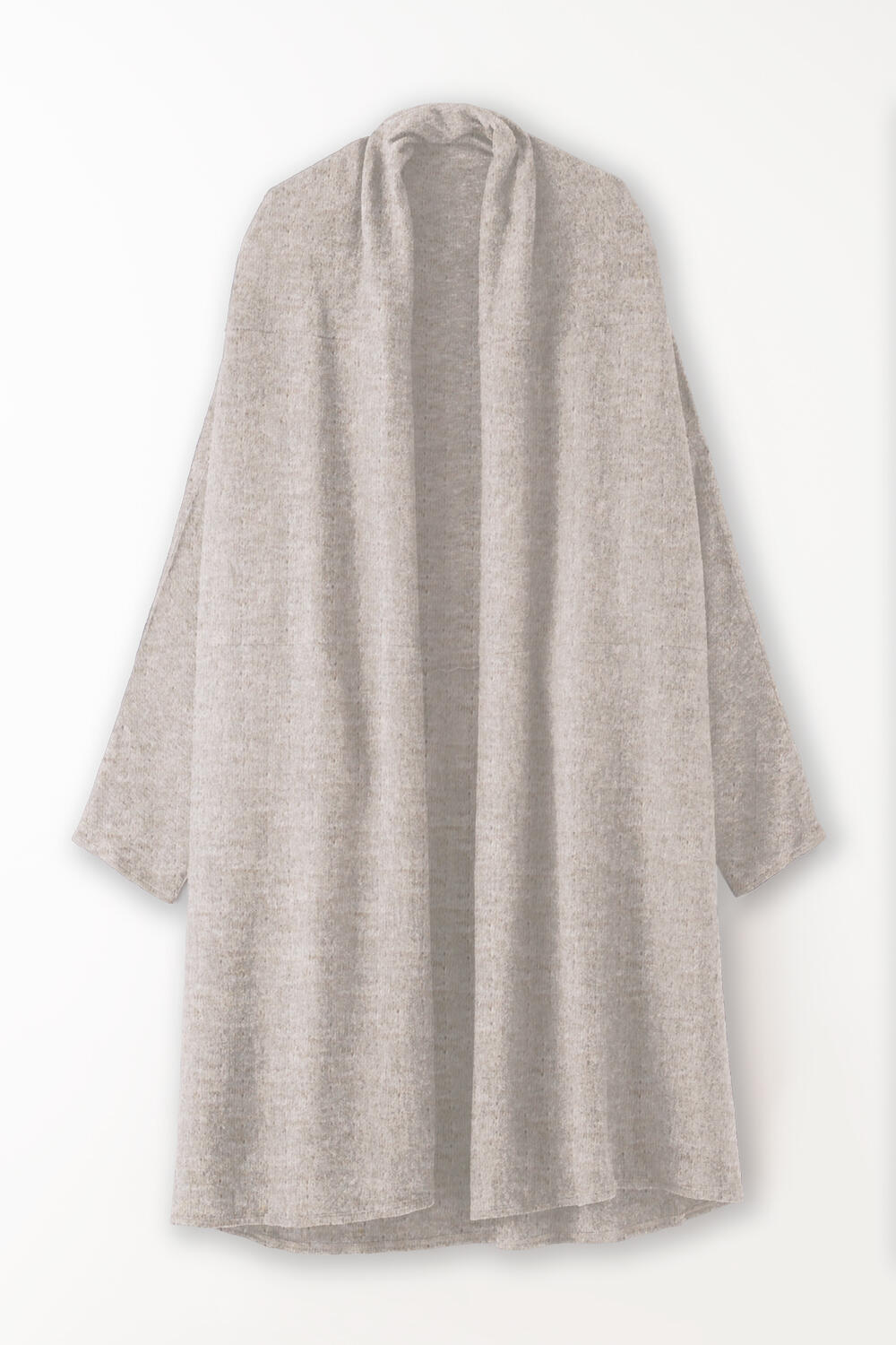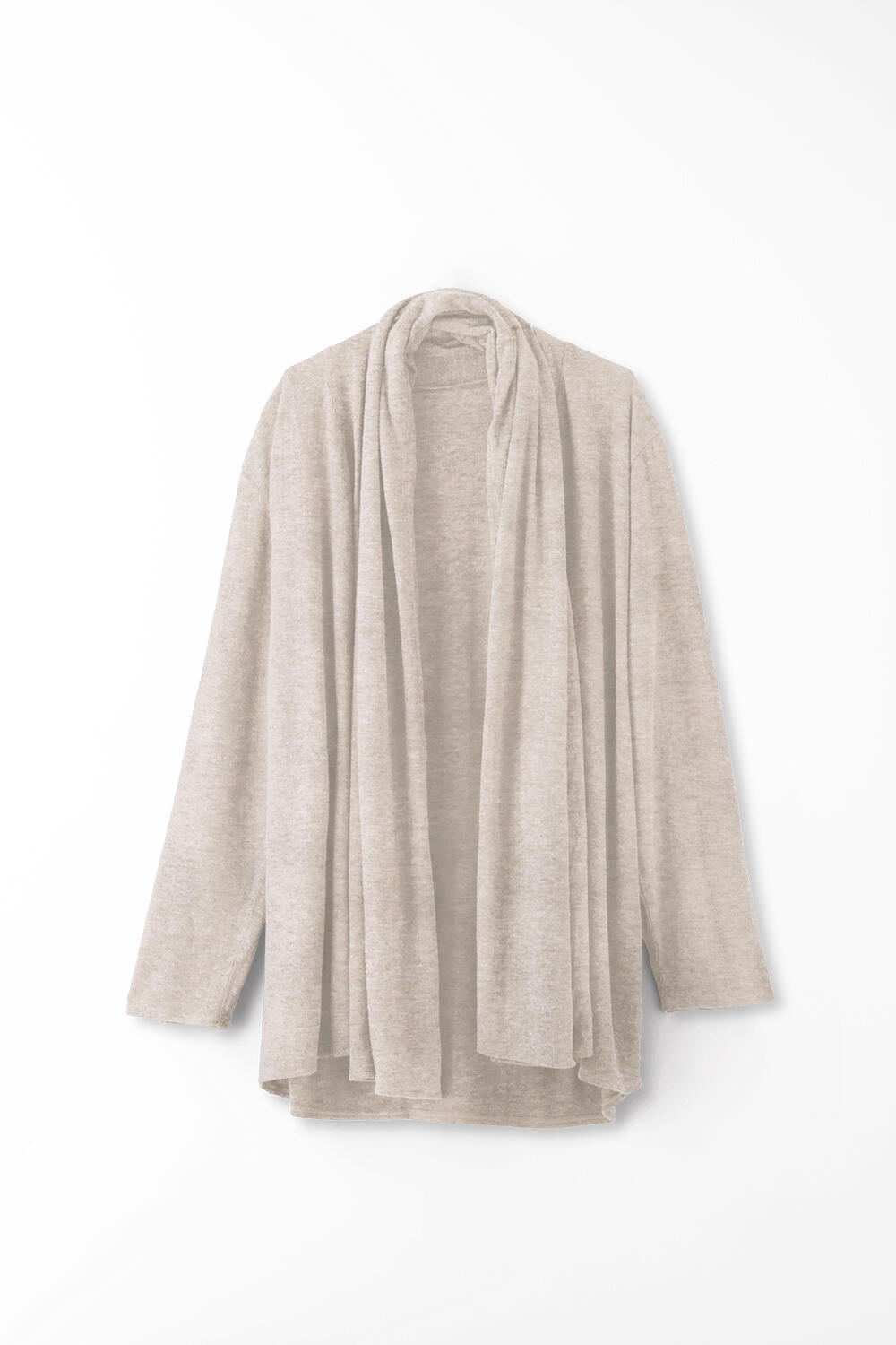 ◆ 短く着ると、ボリュームたっぷりのショールジャケット風の装いになります。癒布の柔らかさに包まれてください。長く着るときはコーディガン(コートとカーディガンの中間的な羽織もの)風に。 膝下までの安心感、すっぽり包まれるリラックスタイムをお楽しみください。