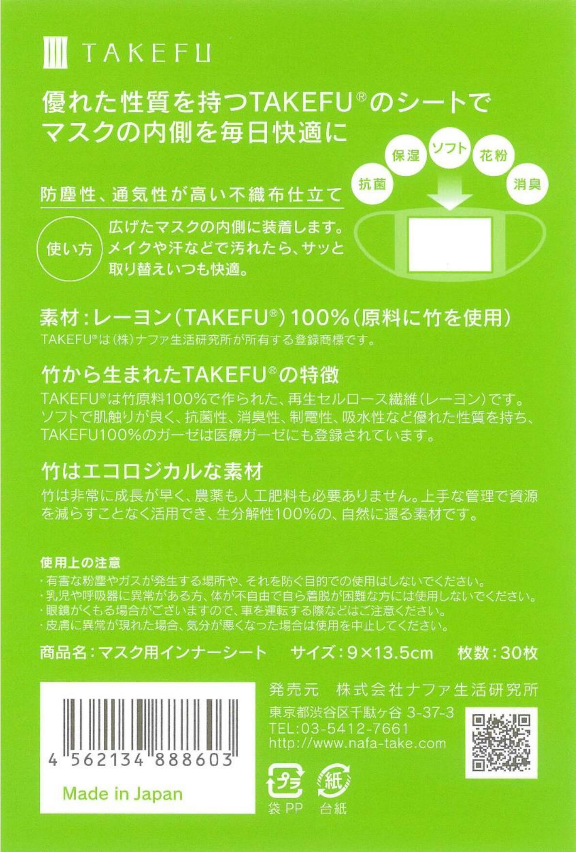 | 商 品 名 | 【竹布】TAKEFU マスク用インナーシート(30枚入) |