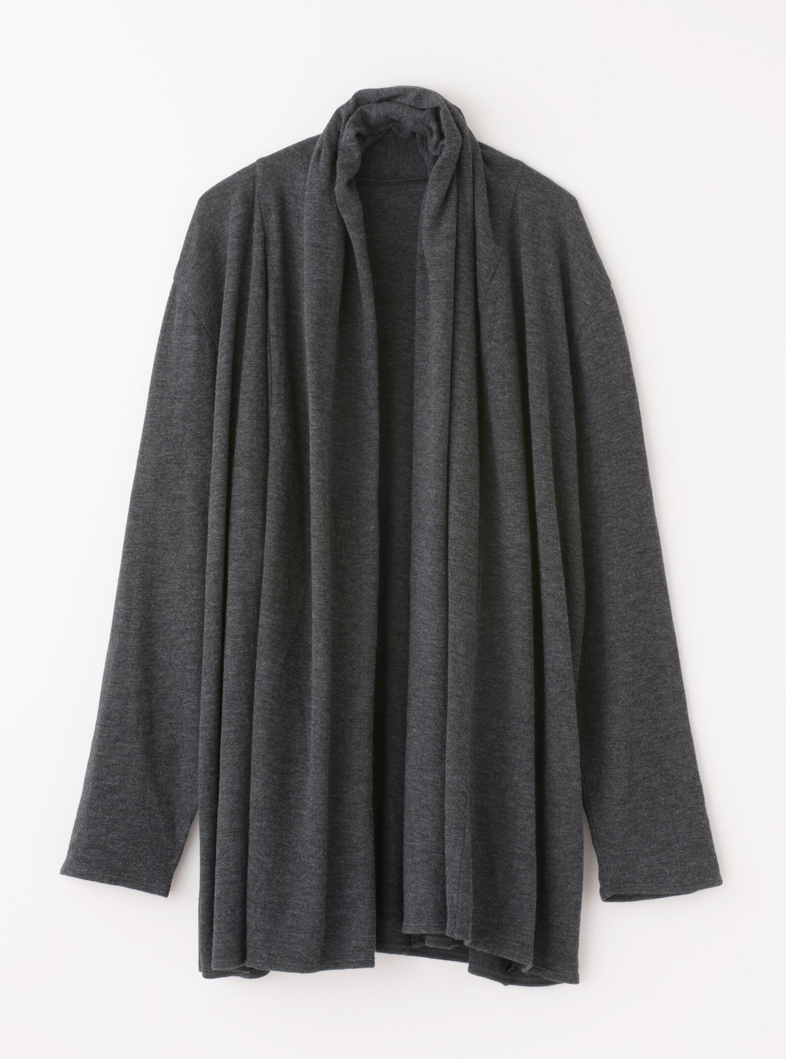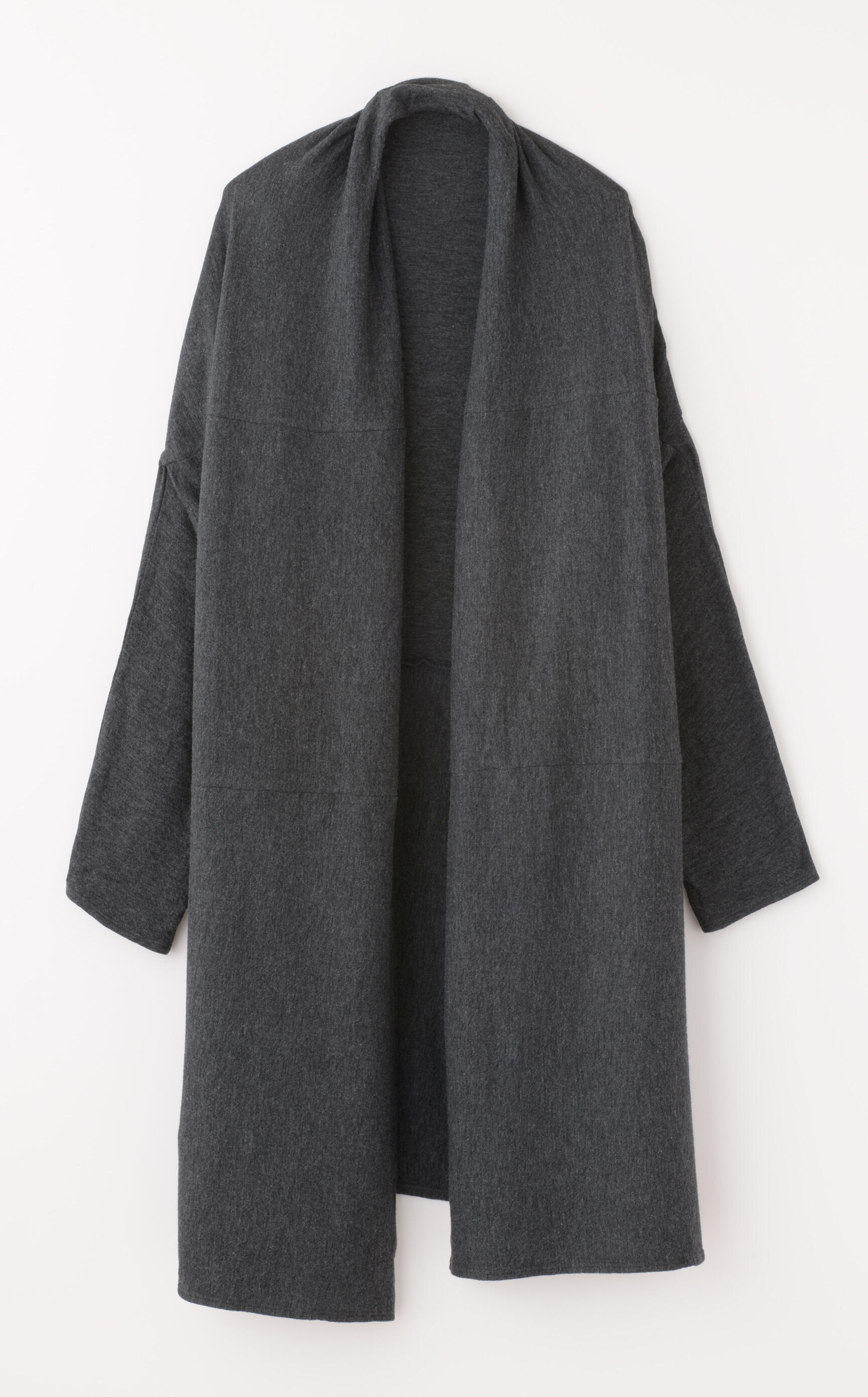 ◆ 短く着ると、ボリュームたっぷりのショールジャケット風の装いになります。たっぷり癒布の柔らかさに包まれることができます。長く着るときはコーディガン(コートとカーディガンの中間的な羽織もの)風に。 膝下までの安心感、すっぽり包まれるリラックスタイムをお楽しみください。