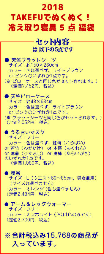 【 TAKEFU(竹布)2018年 ぬくぬく寝具 福袋(5点、税込15768円相当入り) :商品説明】