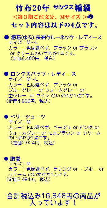 【期間限定】【第3期12/11-12/20受注】【TAKEFU】 竹布20年サンクス福袋<Mサイズ商品入り>(# 9990)